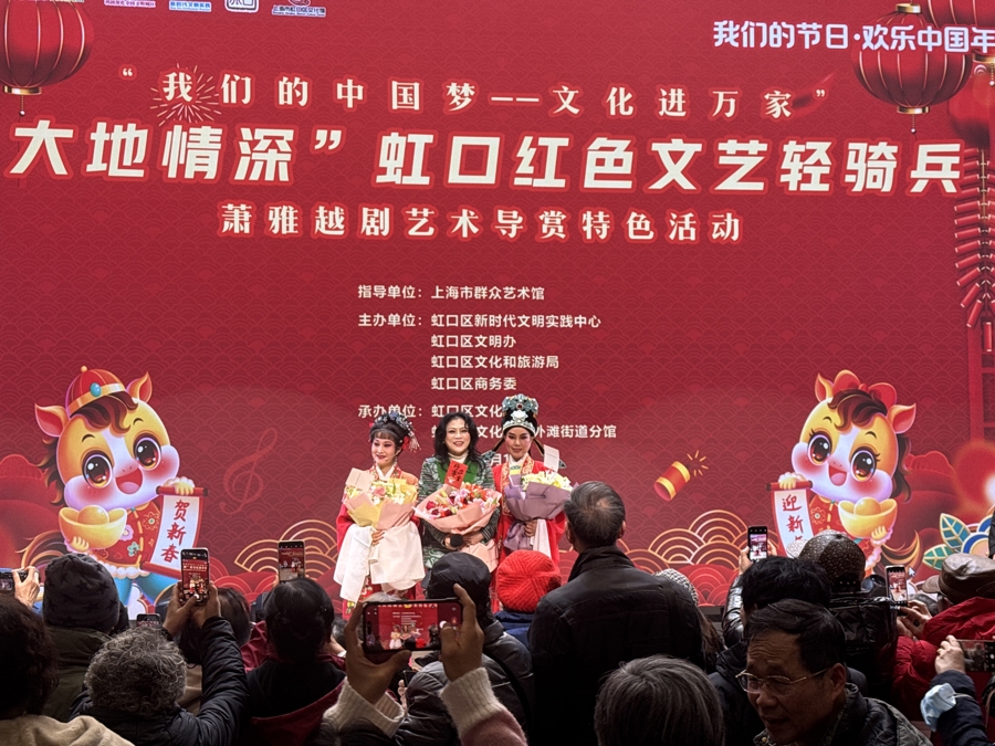 在青年演员晨鹃、富秀珠演绎经典折子戏的过程中,萧雅同步穿插讲解越剧流派特色、唱腔设计、身段技巧及文化背景,帮助观众在欣赏表演的同时,深入理解戏曲艺术的精髓。作为虹口区“名家走基层”文化惠民工程的重要实践,活动由戏曲名家萧雅领衔,将专业资源下沉至基层社区,为留沪过年的外来务工人员、社区居民及戏曲爱好者搭建起与名家零距离接触的文化桥梁,打造出一场“可看、可听、可学、可互动”的越剧艺术盛宴,让传统戏曲真正“活”在百姓身边。